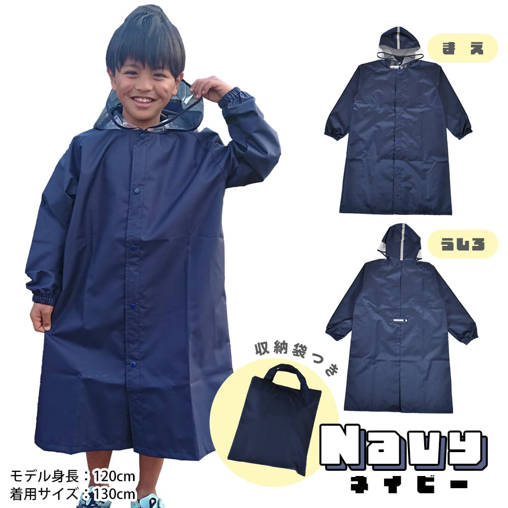 【長期保管訳あり品・返品交換不可】レインコート キッズ 130cm 140cm 150cm 無地 学童 ジュニア シンプル ランドセル対応 色 ネイビー 紺 通学 入学