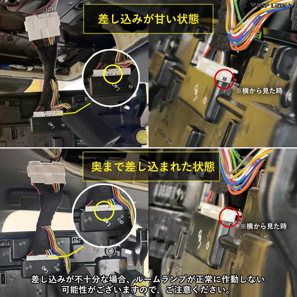 カプラーの差し込みが不十分の場合、ルームランプが正常に動作しない可能性がございます。