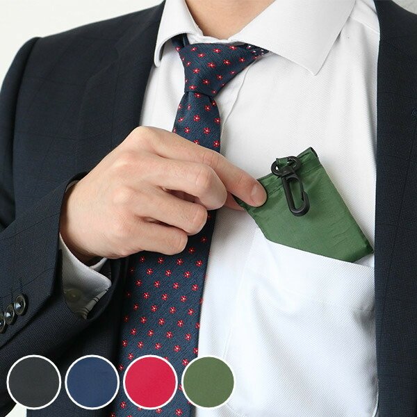 ●スーツの胸ポケットにもすっぽり収まるポケットエコバッグ(Mサイズ)です。