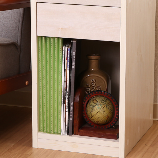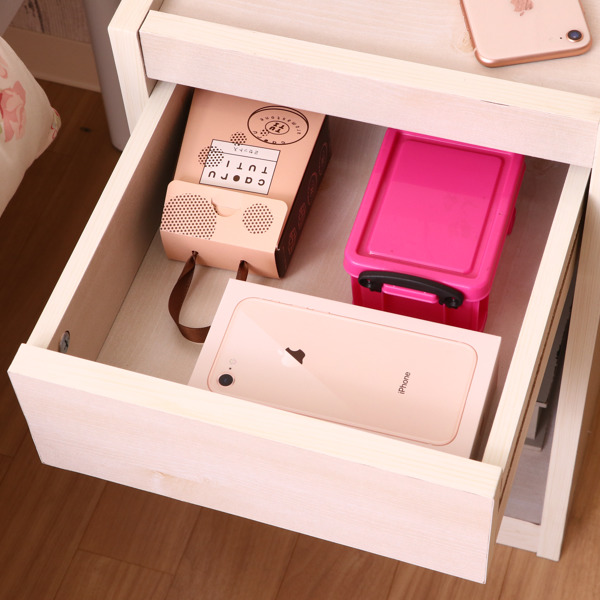 引き出しには散らかりやすい小物類を収納できて、枕元がスッキリと片付きます。
