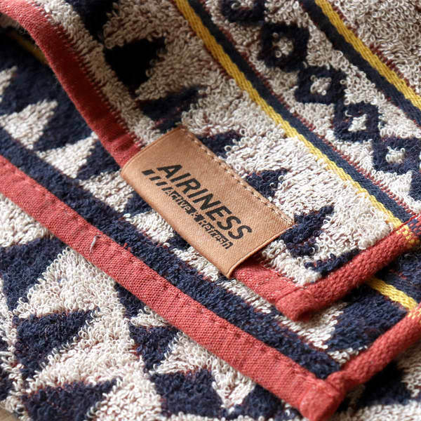 それぞれのタオルのカラーに馴染む「AIRINESS」のおしゃれなタグが付いています。