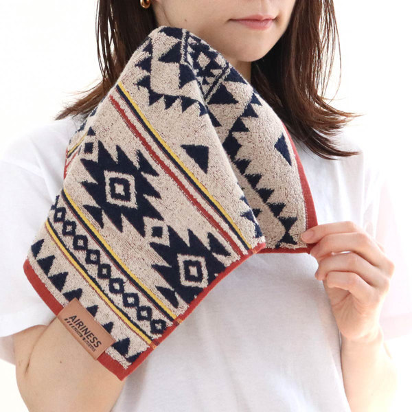 ネイティブ柄のナチュラルな雰囲気が素敵なハンドタオルです。汗のニオイを消臭出来て、気兼ねなく洗濯機で洗える、アウトドアやスポーツをアクティブに楽しむ毎日に最適です。