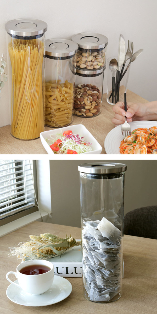 シリアルやナッツ類などの保存にも使いやすく、忙しい朝などもぱぱっと食事の準備ができます。また、コーヒー豆やティーバッグの収納にも使いやすく、コーヒーサーバー横のスペースなどに置いておしゃれなドリンクコーナーを作ることもできます。