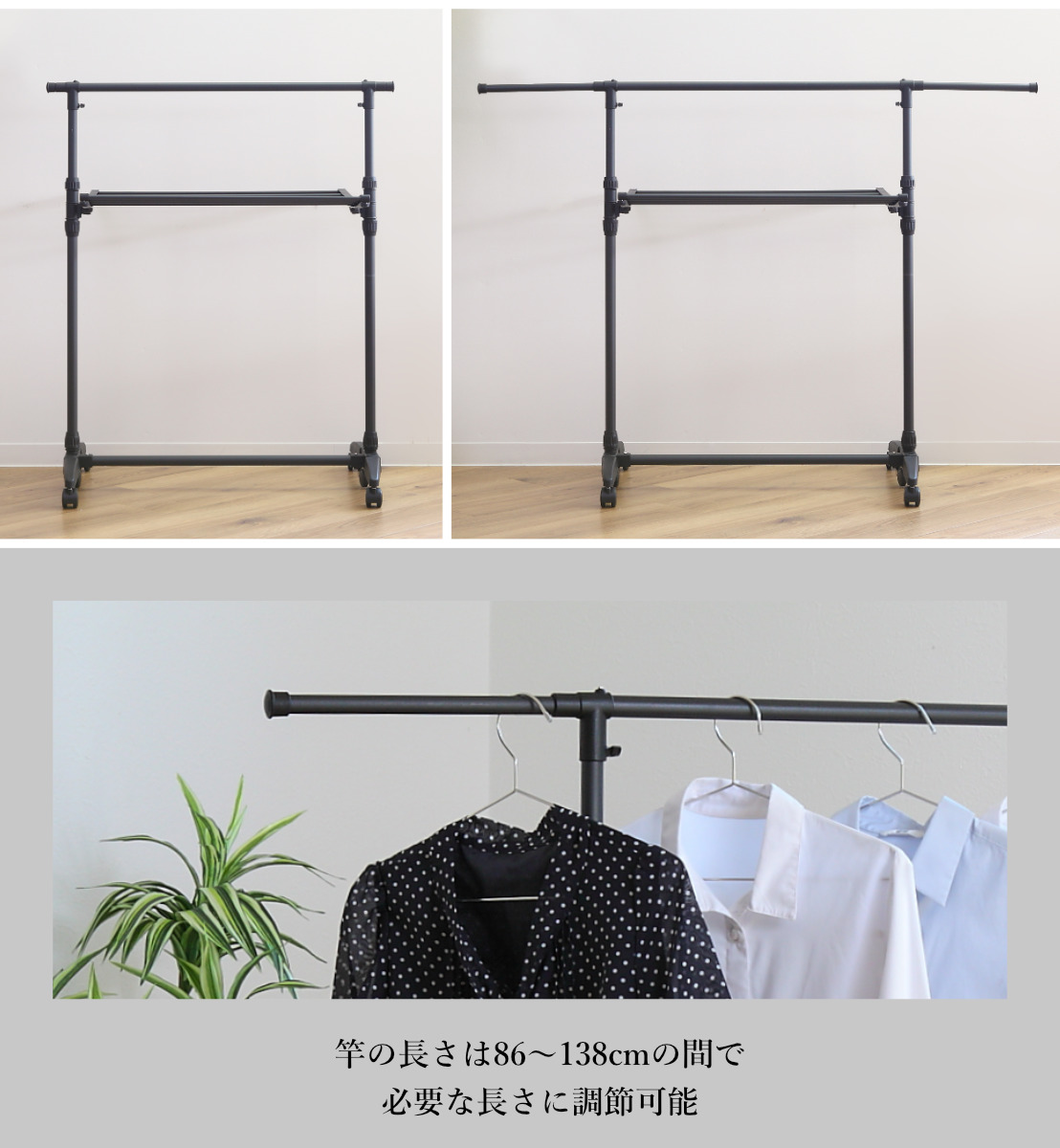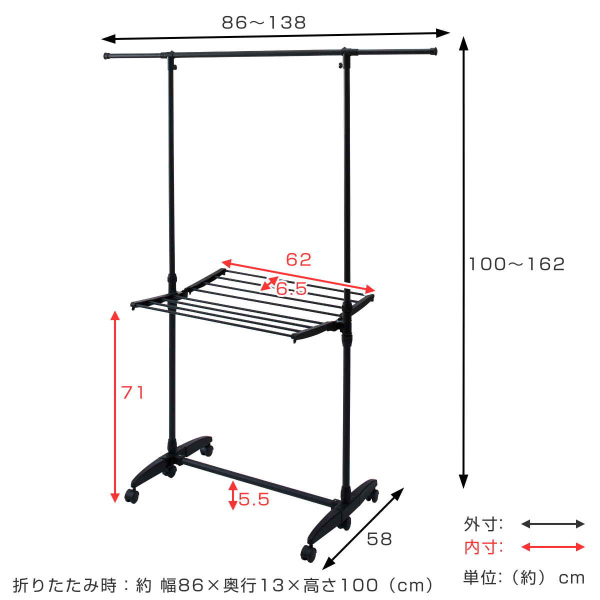 サイズ/約幅86〜138×奥行58×高さ100〜162cm
