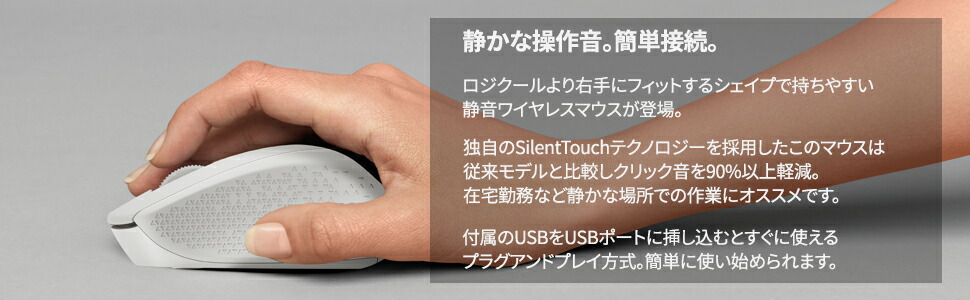持ちやすい静音ワイヤレスマウスロジクールより右手にフィットするシェイプで持ちやすい静音ワイヤレスマウスが登場。