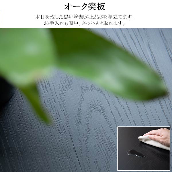●商品説明:オークの美しい木目を残して塗装された黒い天板とひとつひとつ表情の違うパイン古材の脚が上品さを出しつつ、ぬくもりを感じさせるデザインのテーブル。ナチュラルやモダンなど、様々なテイストに馴染みます。