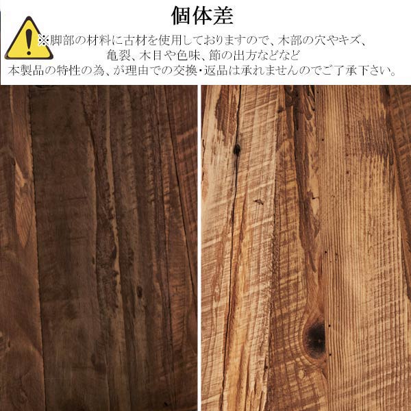 【注意事項】※天然木の特性により個体差があります。※脚部の材料に古材を使用しておりますので、木部の穴や傷、亀裂などは本製品の特性としてご理解ください。