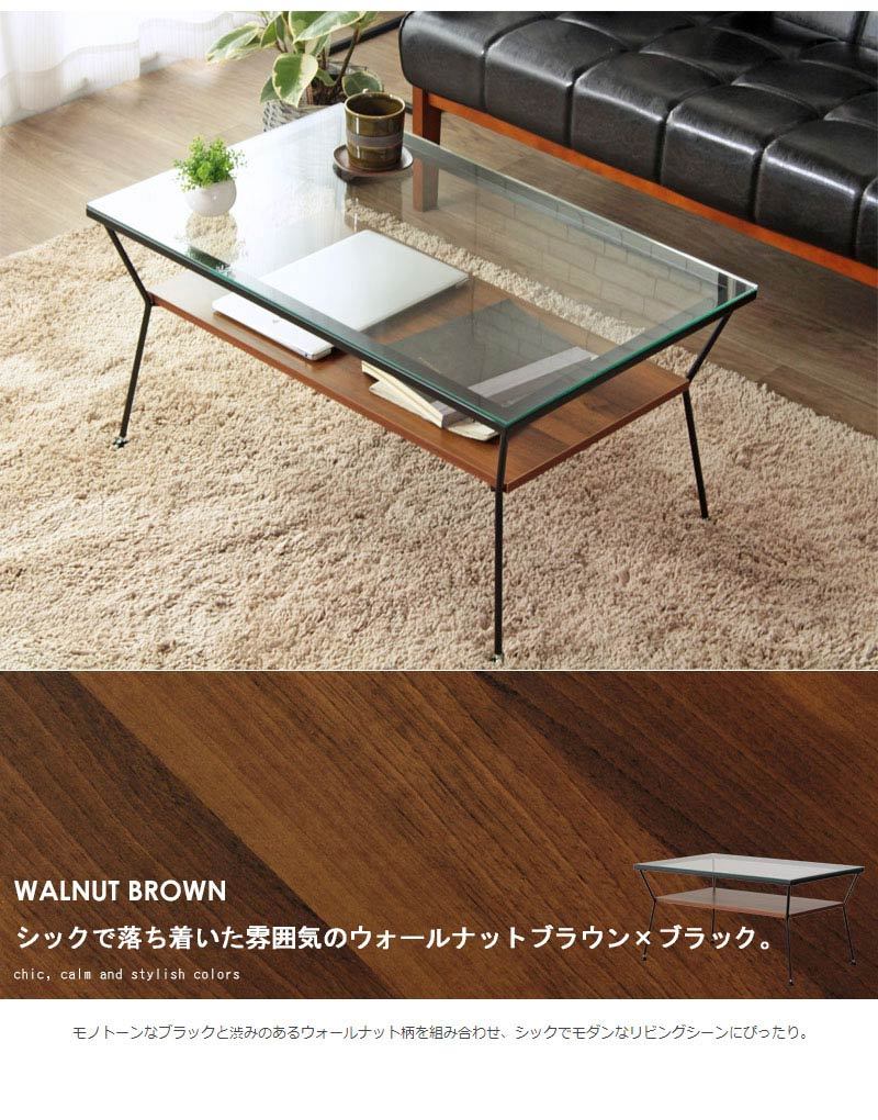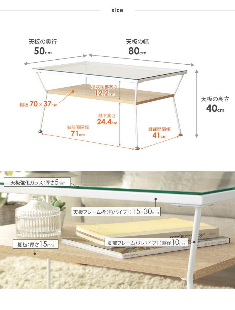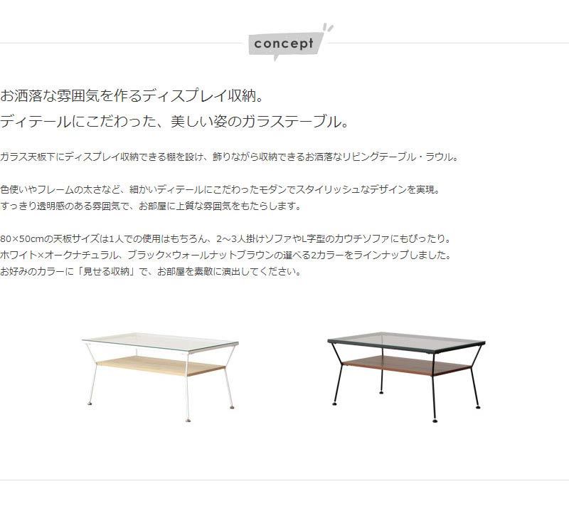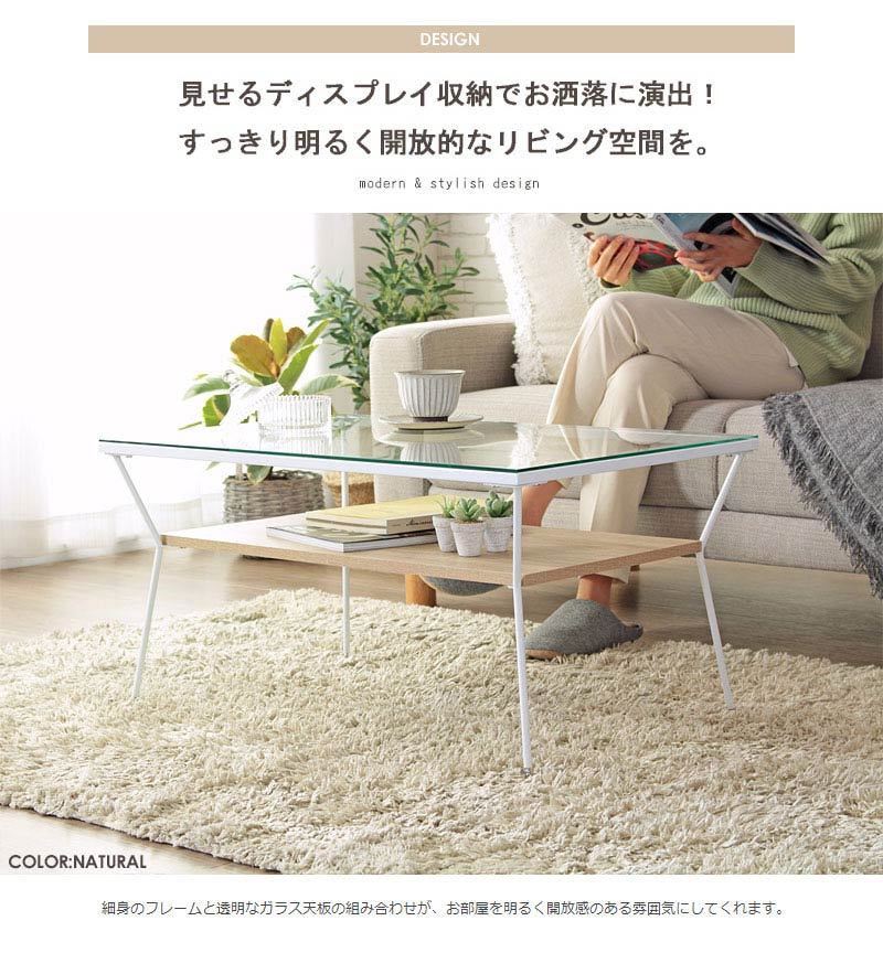 ガラス天板下にディスプレイ収納できる棚を設け、飾りながら収納できるお洒落なリビングテーブル。