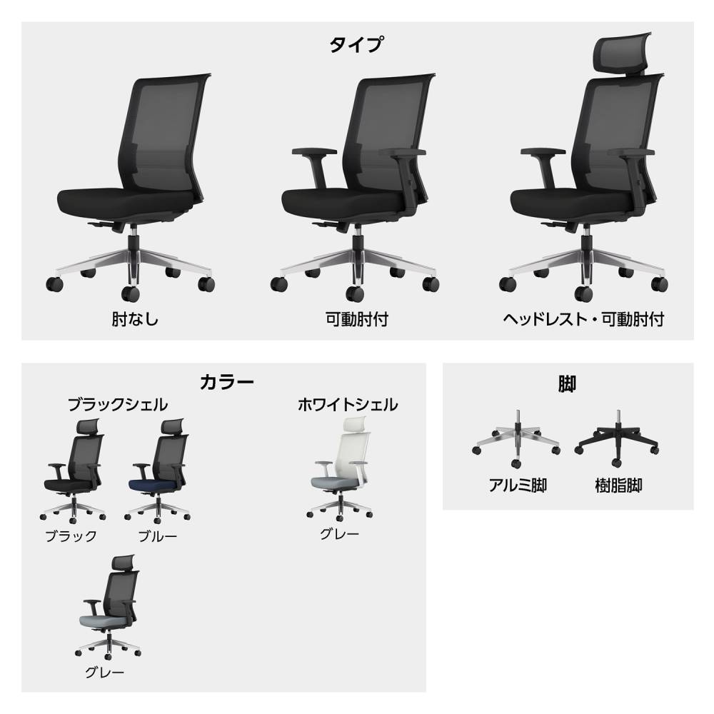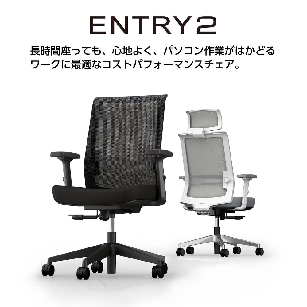 オフィスチェア エントリー2 肘・ヘッド付き/ブラックフレーム/樹脂脚