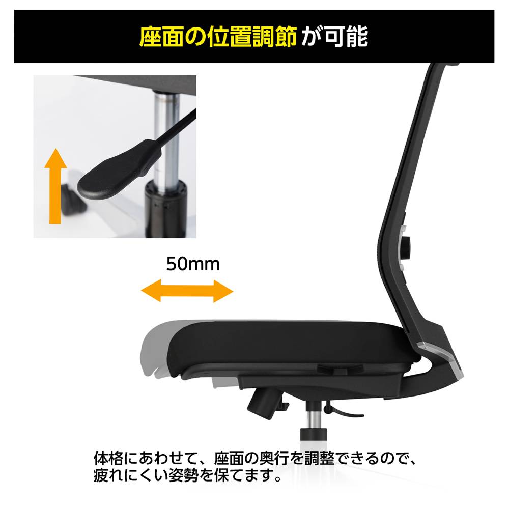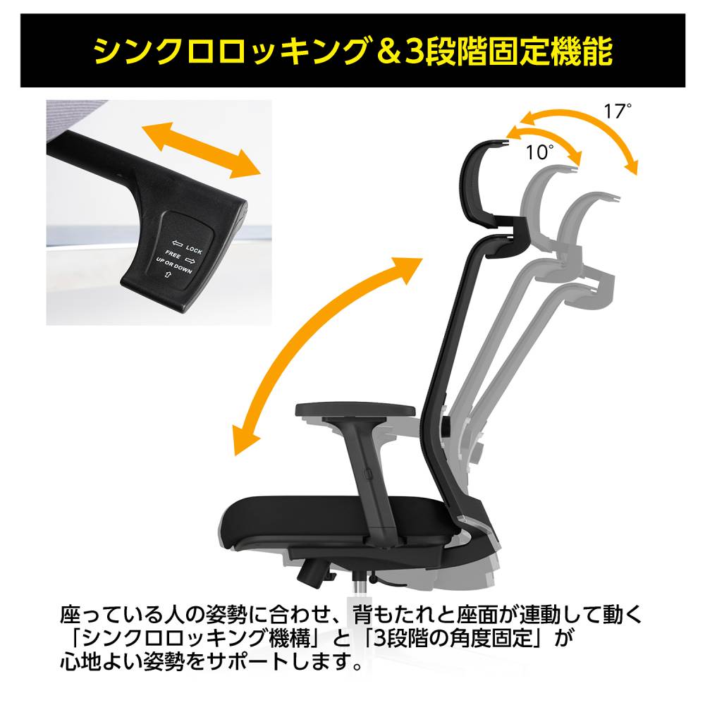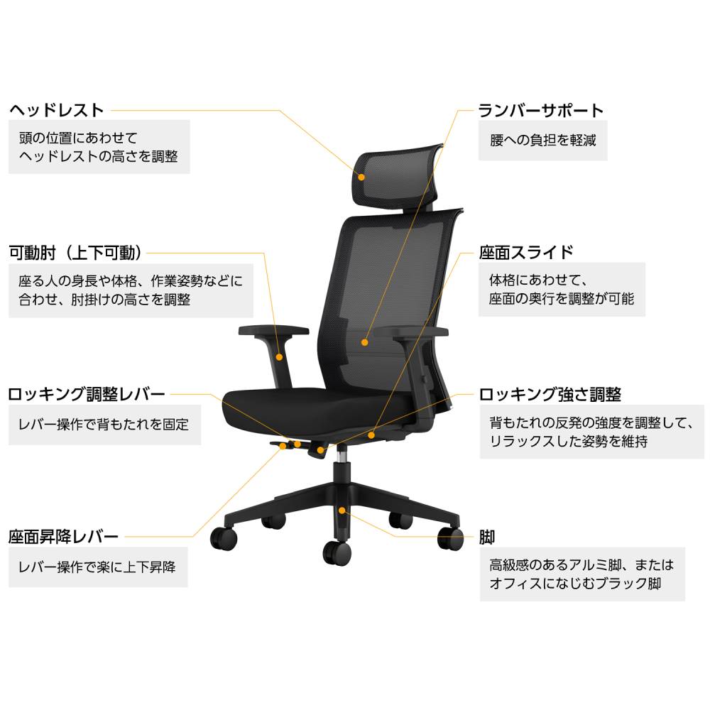 シンクロロッキング・座面スライド・モールドウレタン座面など、高機能チェアでも採用される優れた機能を備えています。