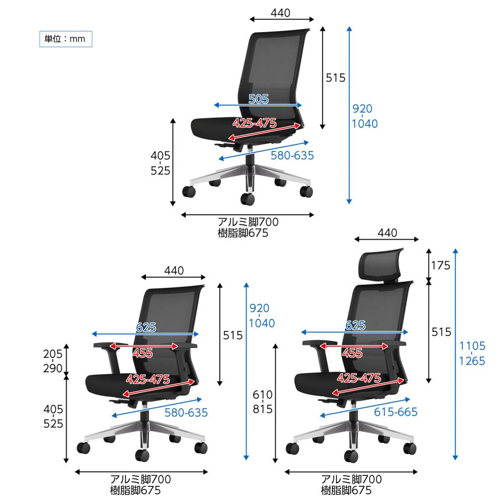外寸:幅675×奥行615×高さ1105〜1225(座面高405〜525)mm