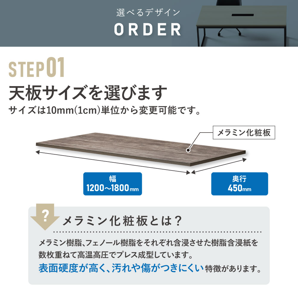 天板:表面材/メラミン化粧板 エッジ/ABS樹脂エッジ巻 30mm厚