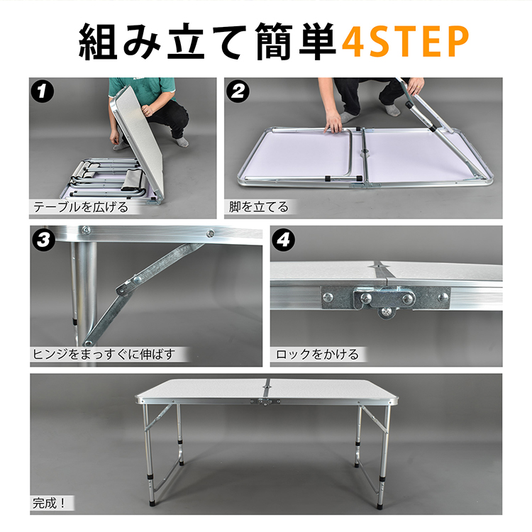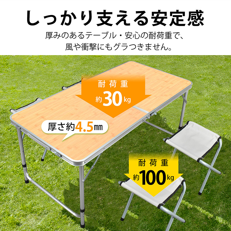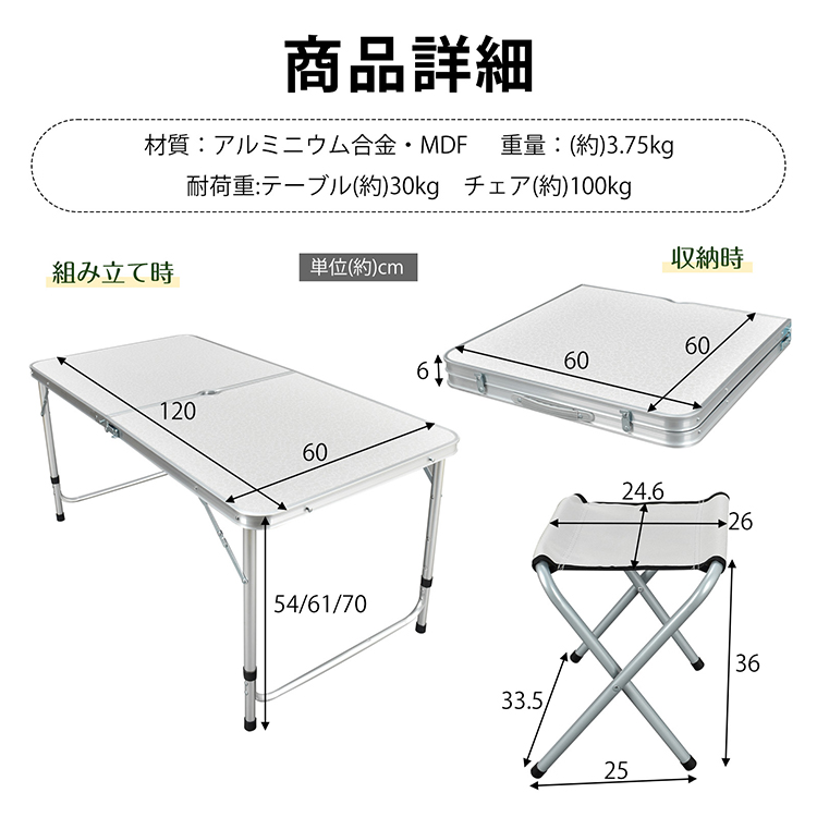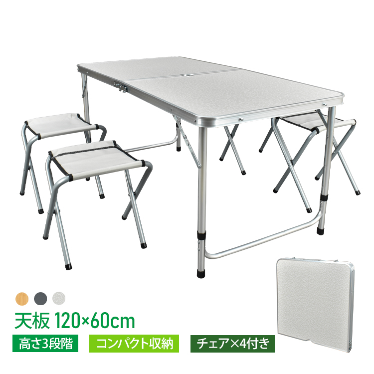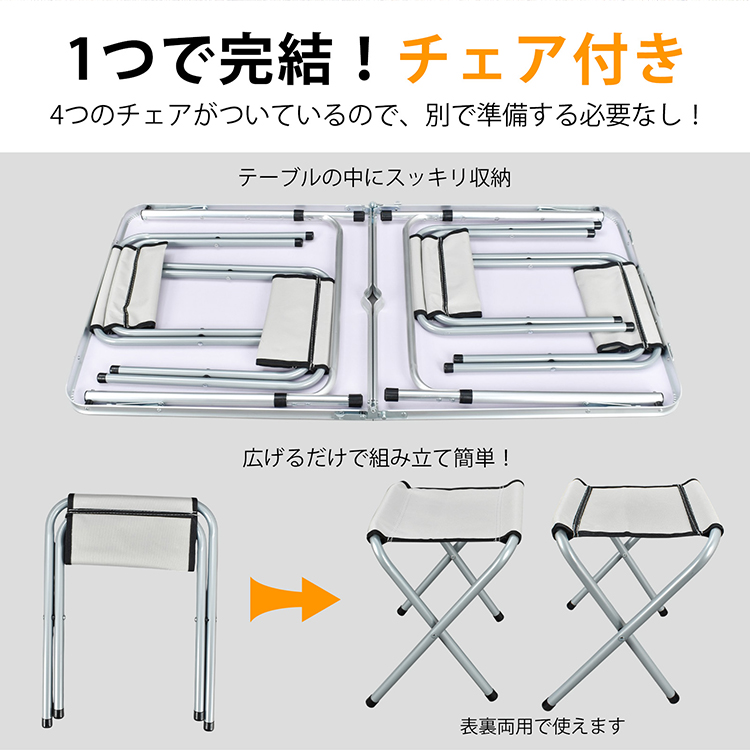 テーブルセット アウトドア アルミテーブル レジャーテーブル 折りたたみ テーブル 120×60 椅子付き チェア付き キャンプ BBQ 高さ調節 コンパクト収納