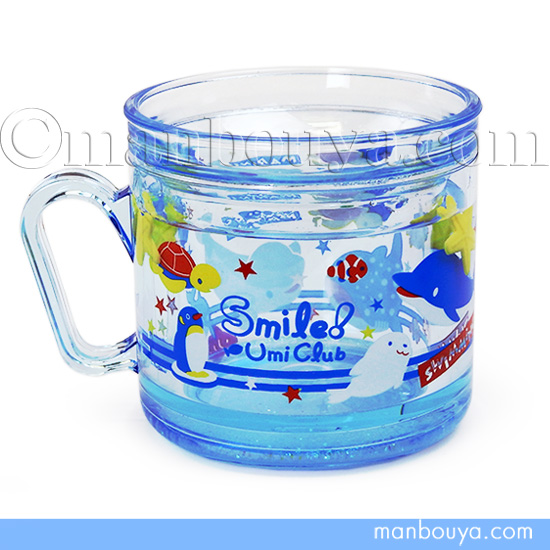 可愛い海の生き物がいっぱい。小さめの持ち手付きプラスチックコップ。