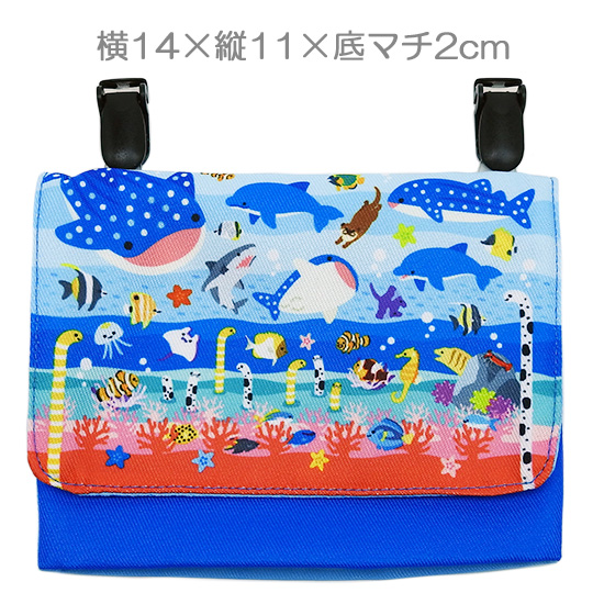 水族館グッズ ポケットポーチ クリップ 移動ポケット 小学校 ヤエックス 海のなかま 取り付けポケット メール便発送可