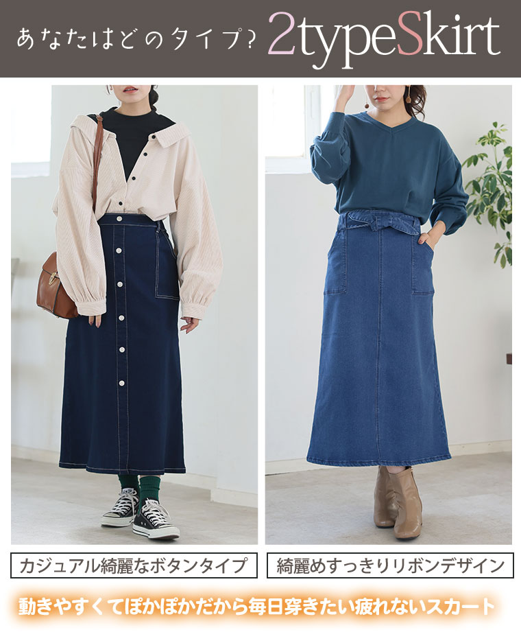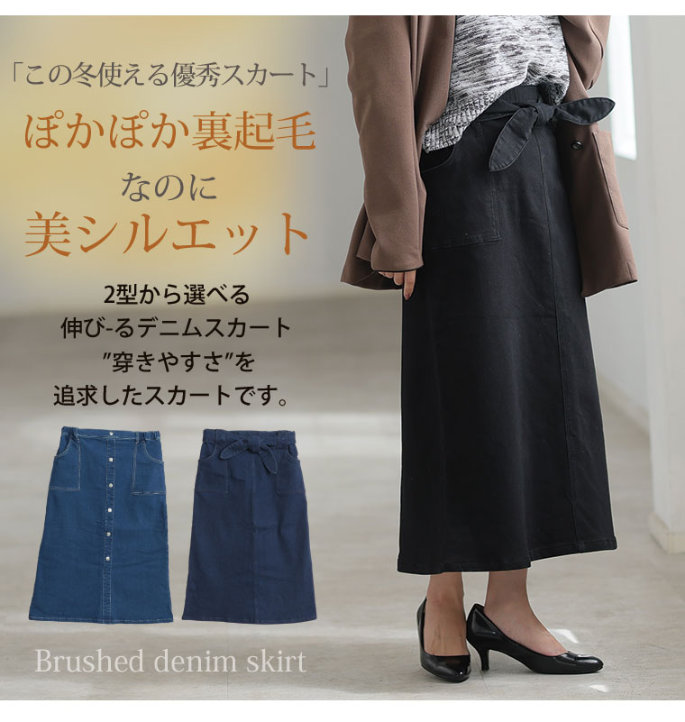 「絶対使えて実はポカポカ♪」 疲れない♪ストレッチデニムスカート