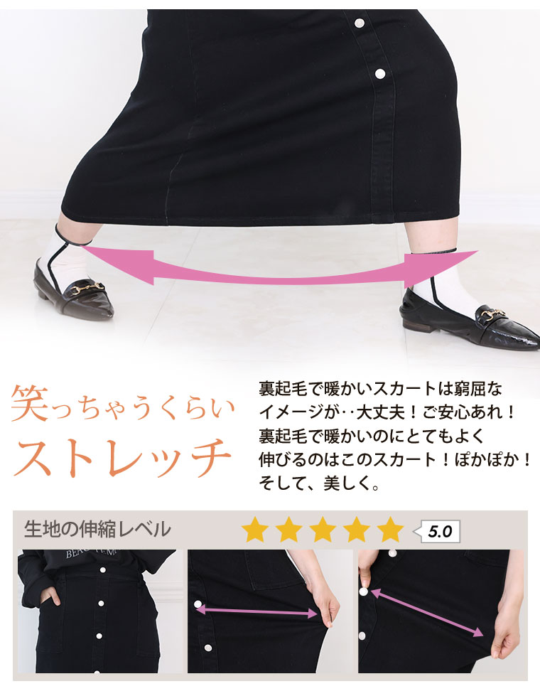 笑っちゃうくらいストレッチ!裏起毛で暖かいのにとてもよく伸びるのはこのスカート♪ ぽかぽか!そして、美しく!