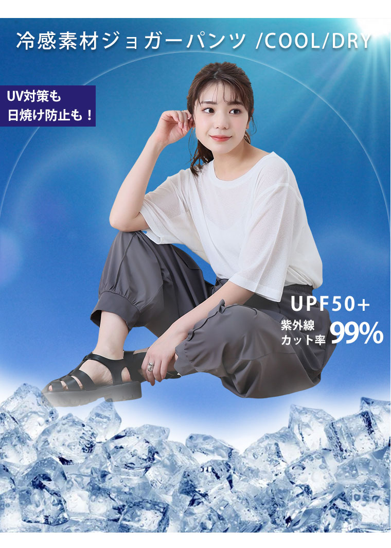 <瞬寒!アイスヴェールシリーズ> ヒヤッとしながら日焼け対策 美脚ジョガーパンツ