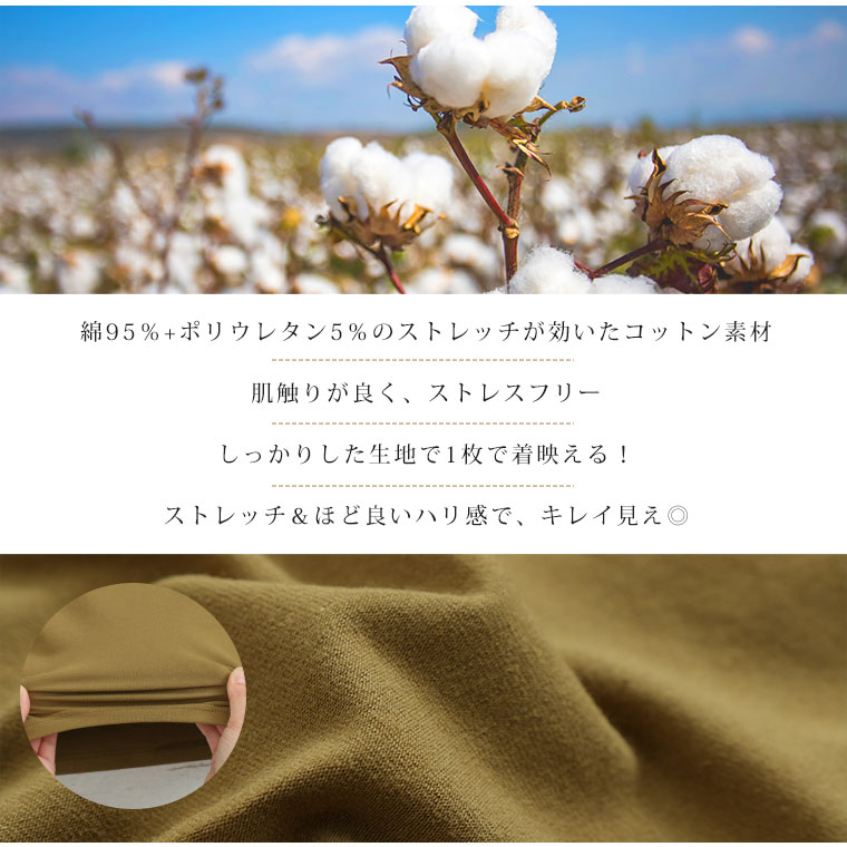 【素 材】綿95% ポリウレタン5%【透け感】なし【裏 地】なし【伸縮性】あり【ポケット】なし【洗濯表示】手洗い可