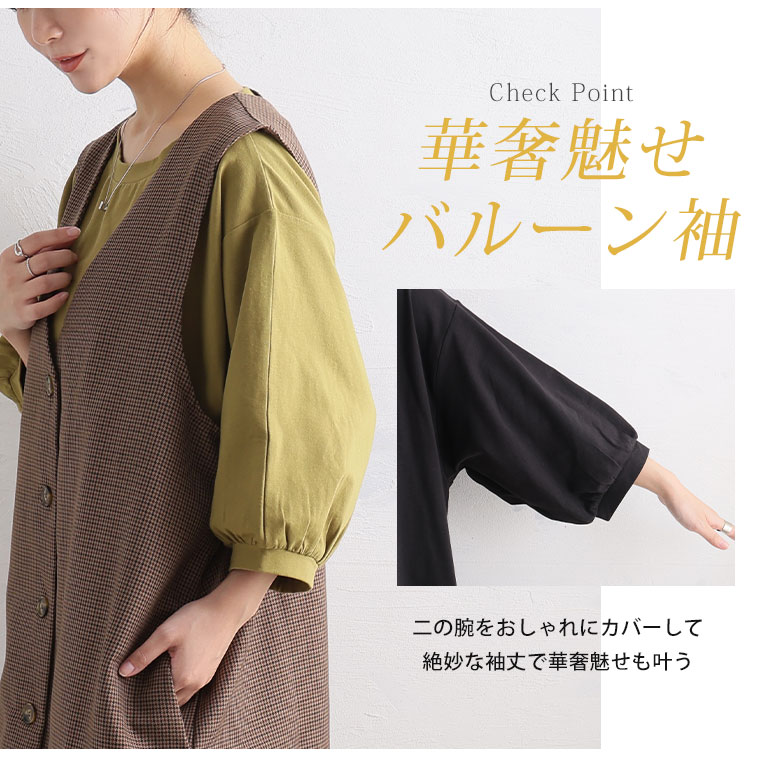 バルーン袖が可愛い!エアリーコットンTシャツ