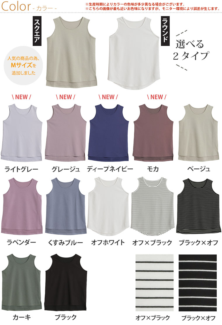 新色・新サイズ追加!2typeから選べる タンクトップ