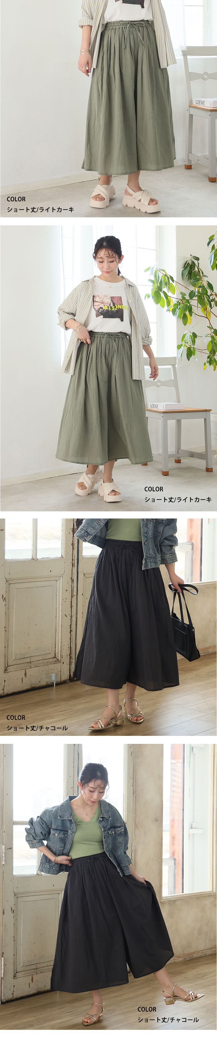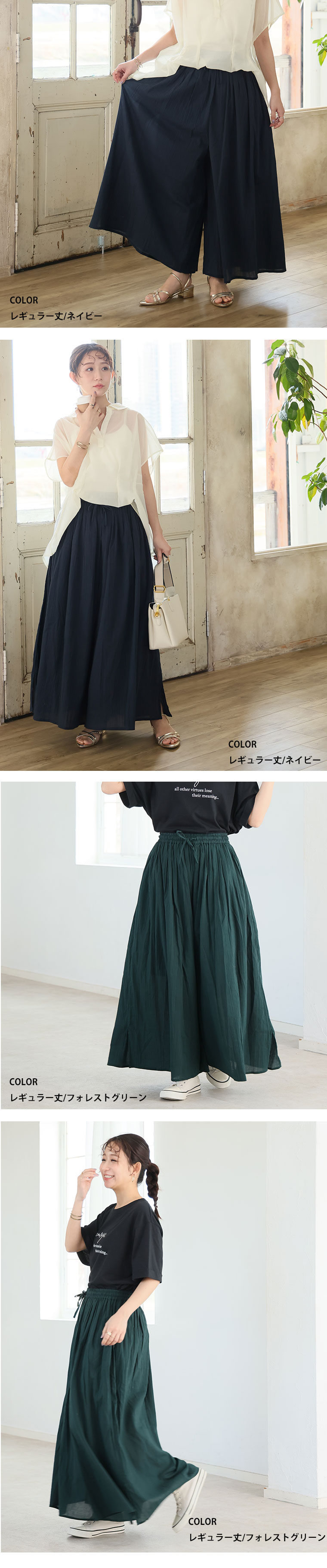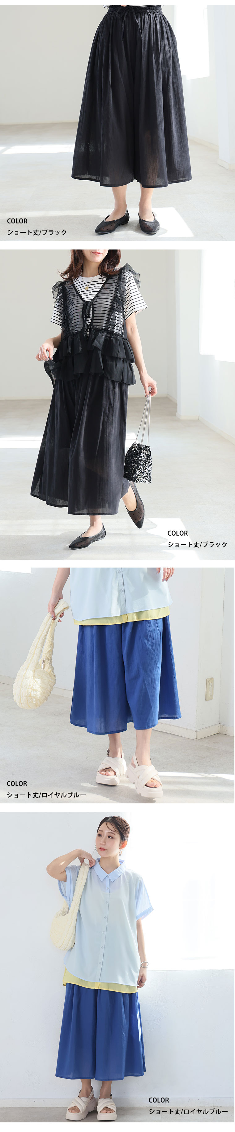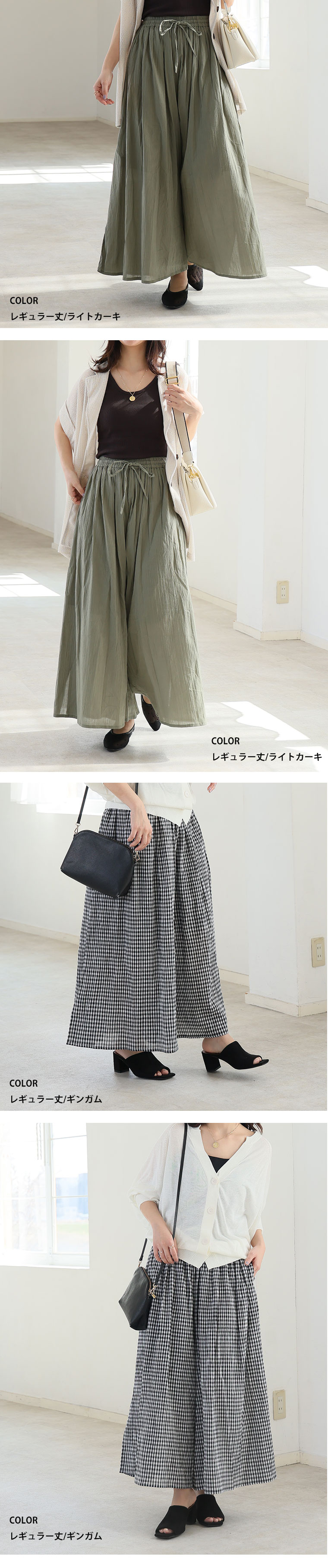 【風通るプレミアム】2丈から選べる綿楊柳ギャザーフレアスカンツ