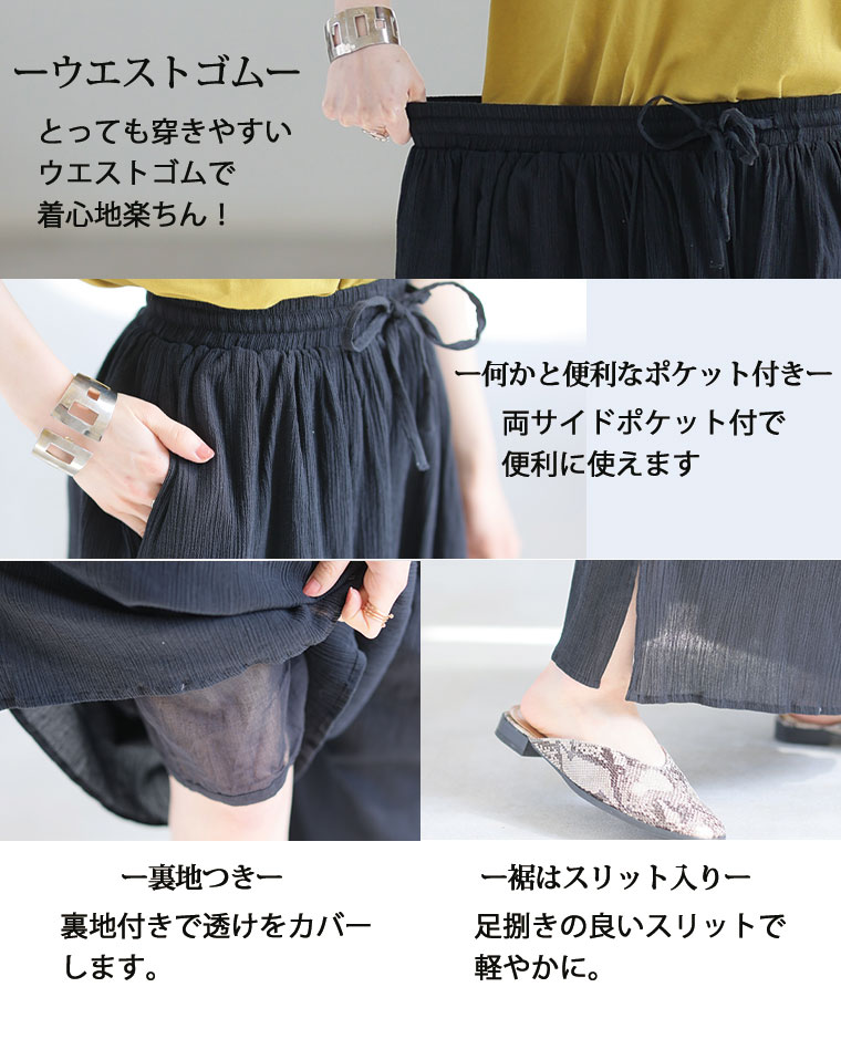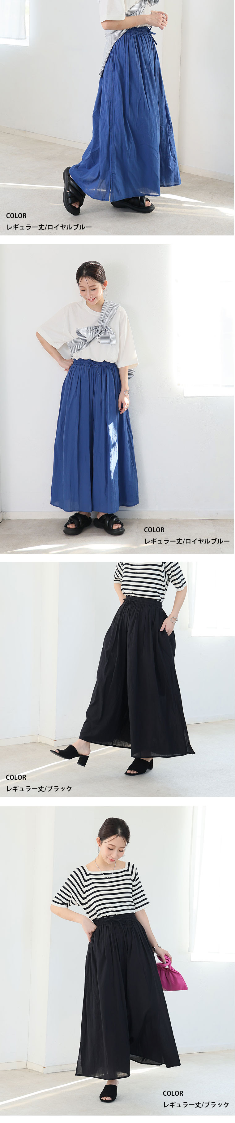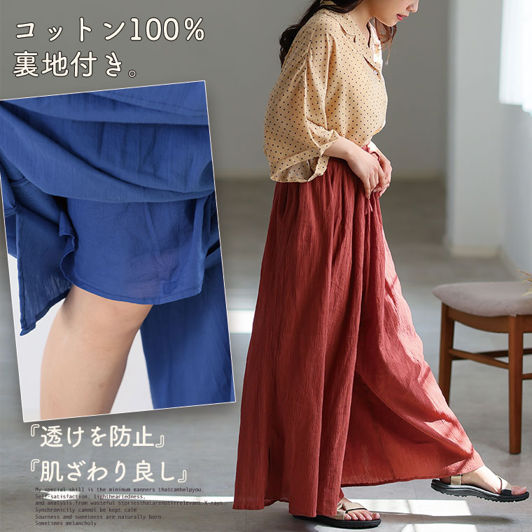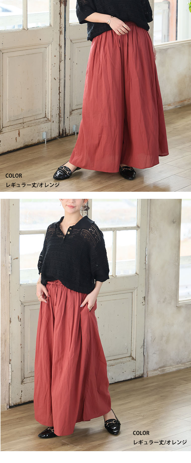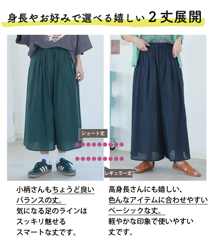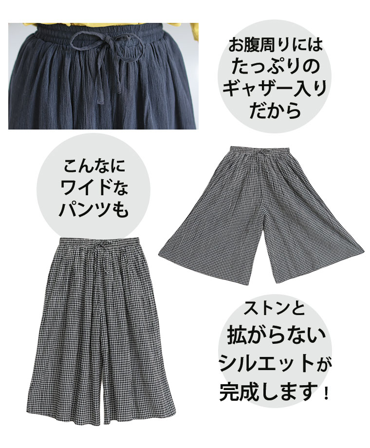 【風通るプレミアム】2丈から選べる綿楊柳ギャザーフレアスカンツ