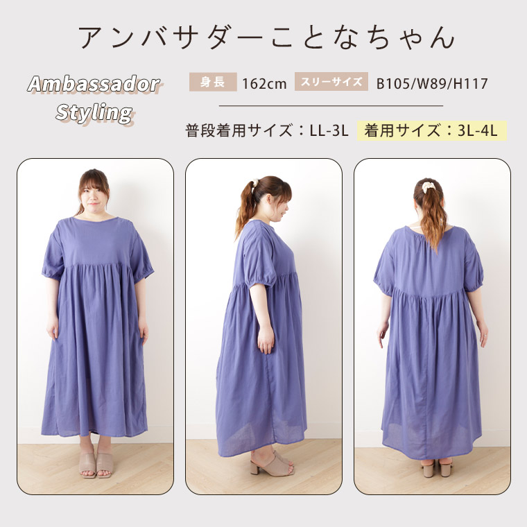 ■着用感:ゆったり、■着丈:足首上、■バスト:ややゆったり、■腕回り:ややゆったり、■袖口:ややゆったり、■袖丈:肘下、■首回り:ちょうどいい、■ウエスト:-、■ヒップ:-、■太もも:- ●さらさらとした涼やかな生地感でとても快適な着心地です。体のラインを拾わず軽やかに着られました。透け感素材がこの時期に嬉しい一着です!