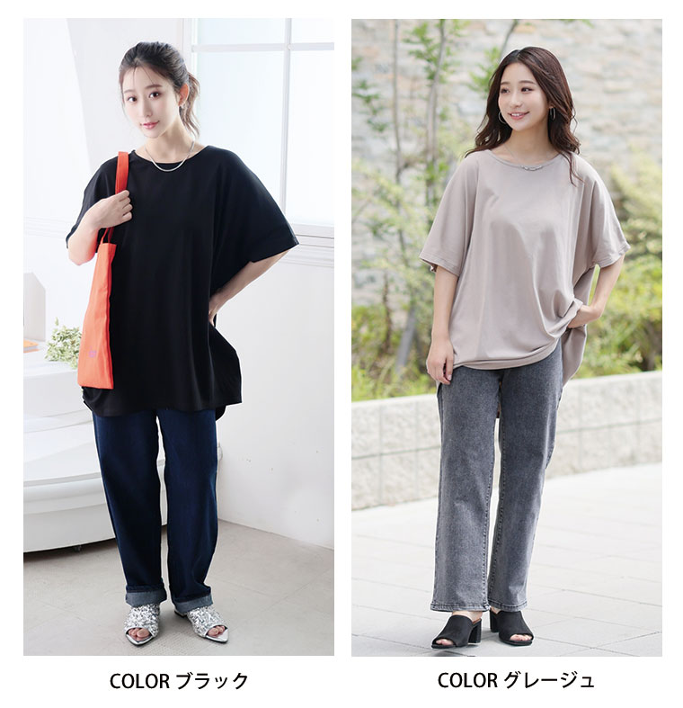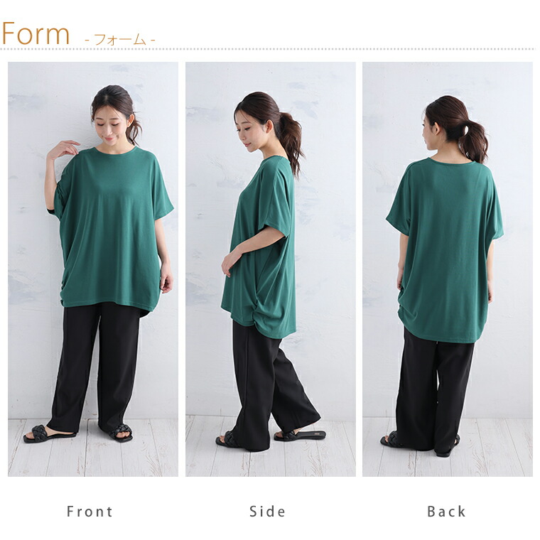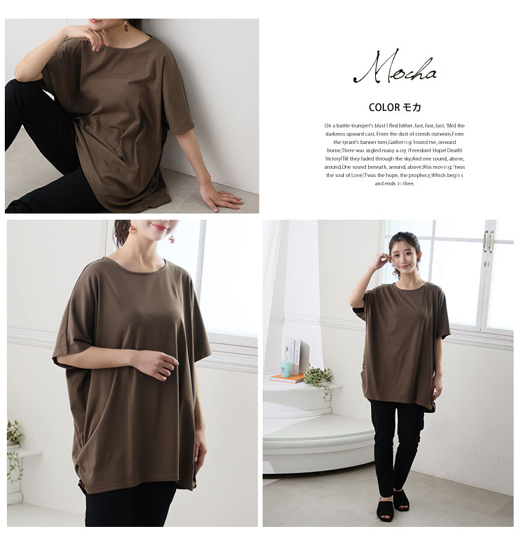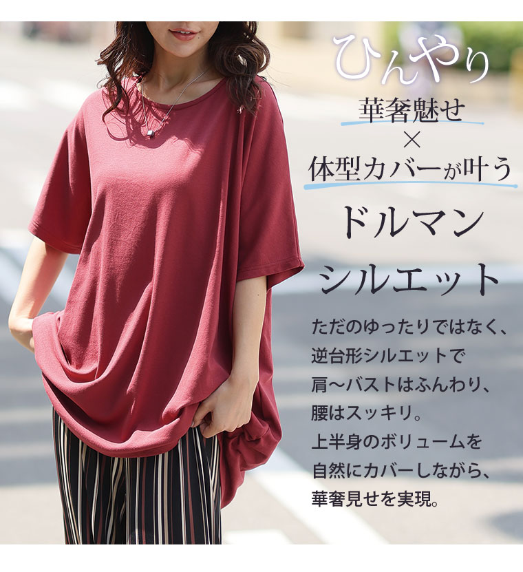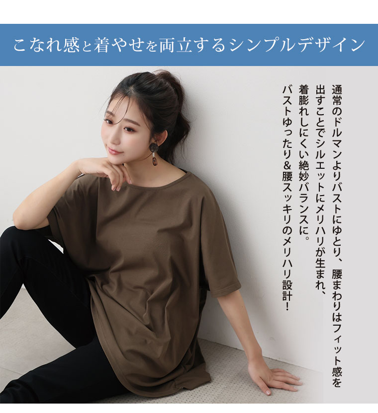 ゆったりとしたドルマンシルエットが体を包み込み、スタイルアップと着映えを叶えます。