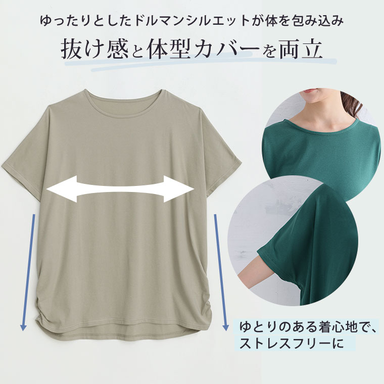 ひんやり&ゆったりで体を包み込む サイドギャザードルマントップス