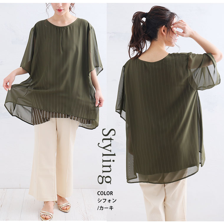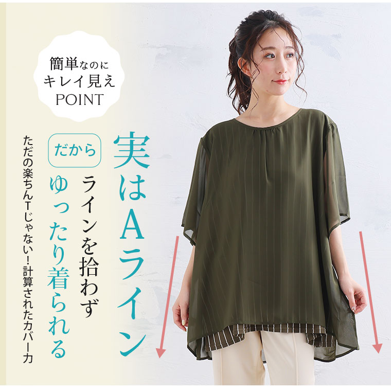 ぽっちゃりさんの為の上半身体型カバー選べる ドッキングプルオーバー