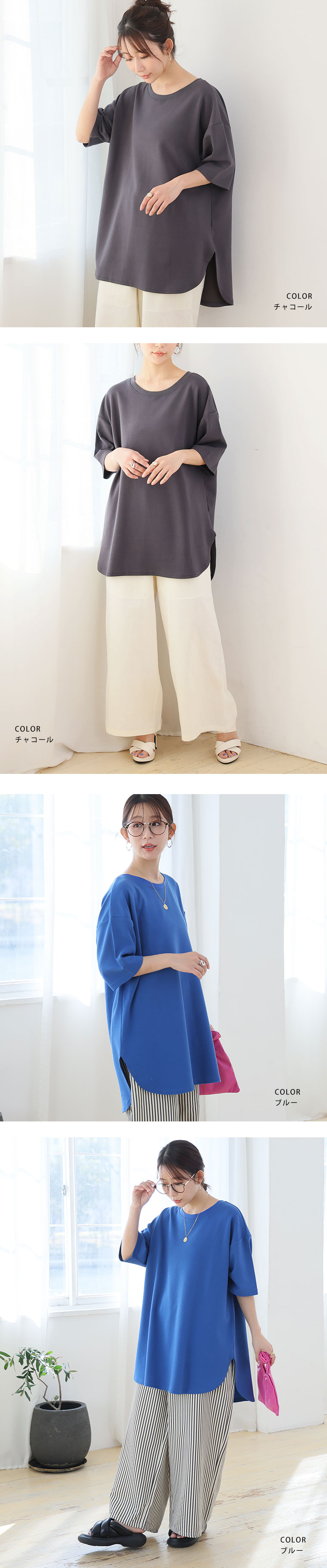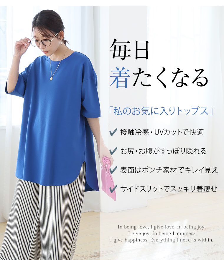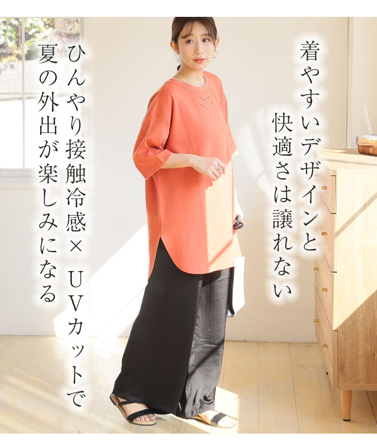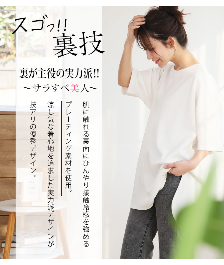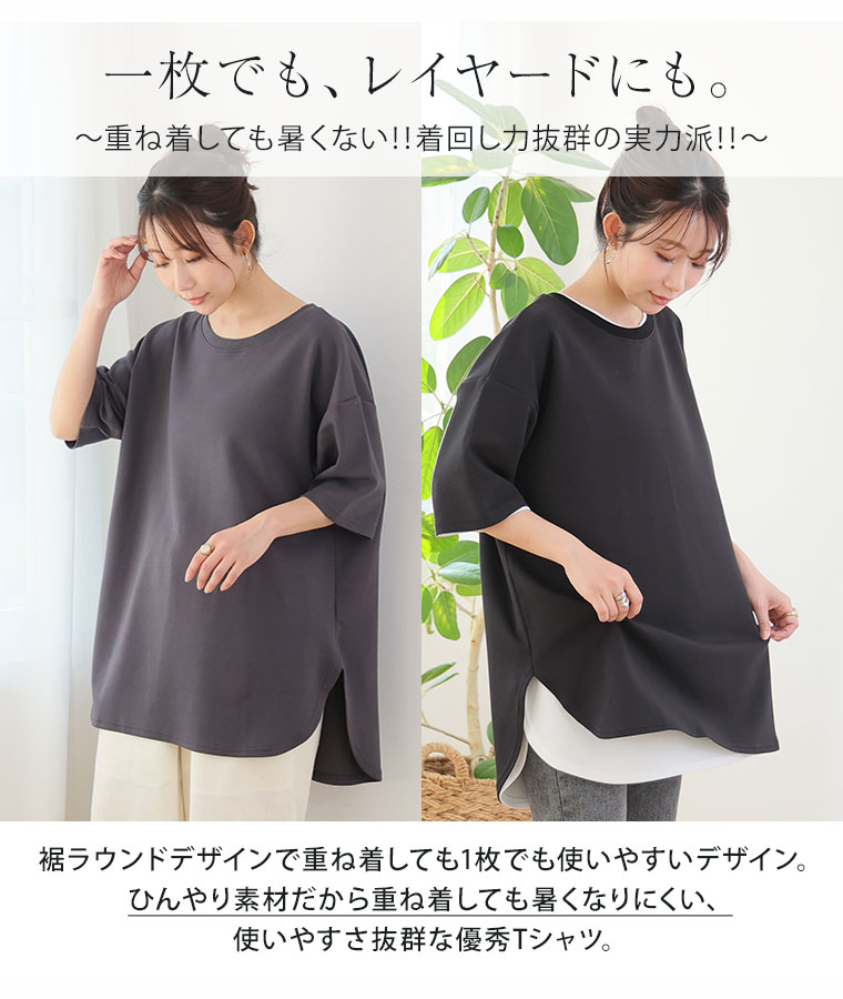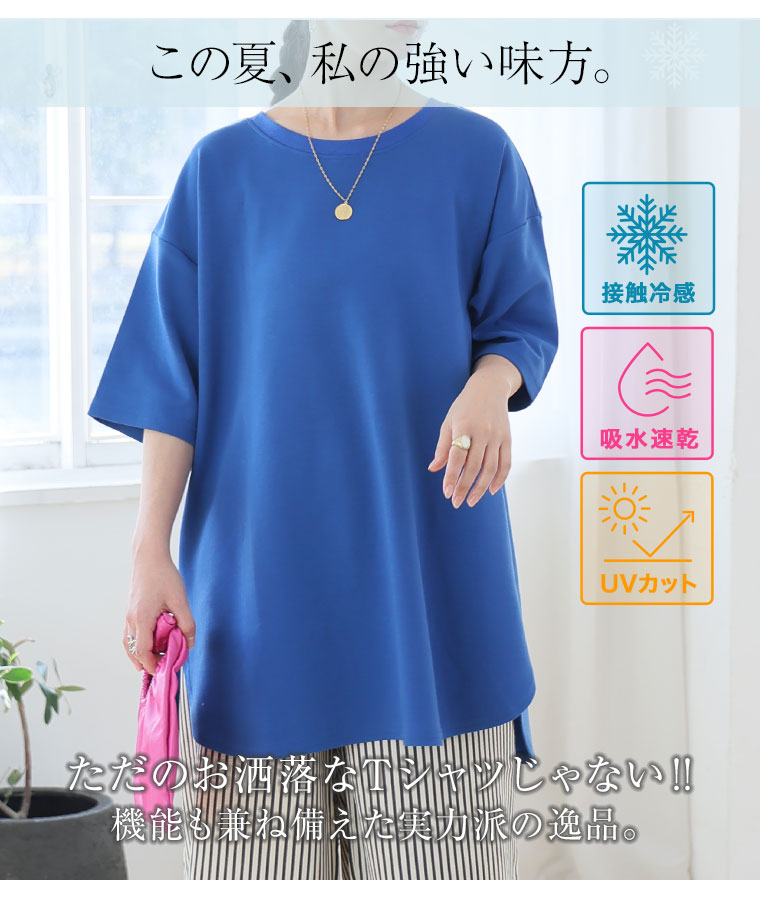 大きいサイズ レディース トップス スゴ 裏技 さらすべ美人 裾ラウンド Tシャツ カットソー UV対策 吸水速乾 接触冷感 LL 3L 4L 5L 6L 半袖 夏 A