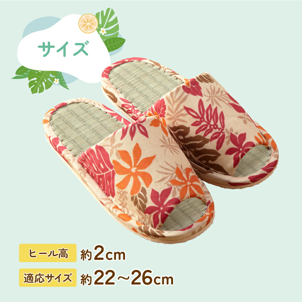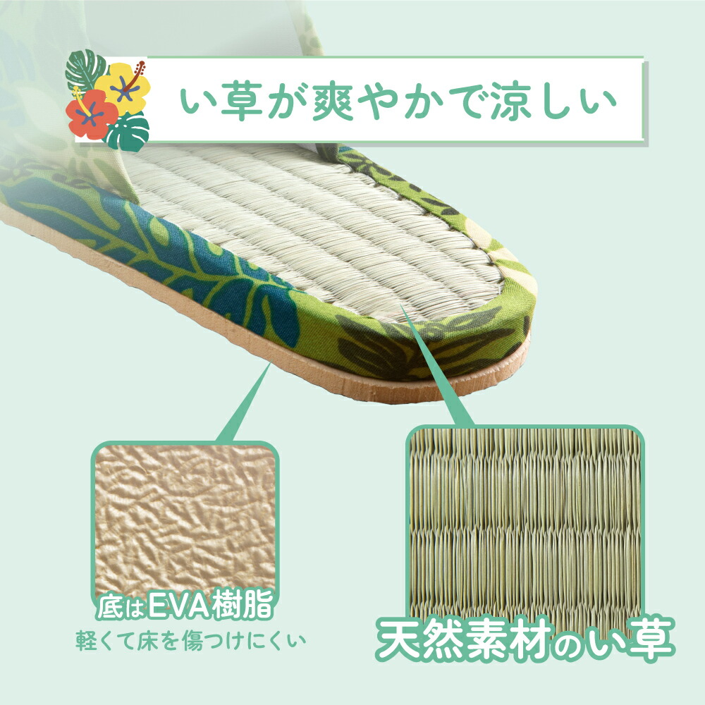 来客用スリッパ イ草 いぐさ 天然素材 畳 たたみ 室内履き ルームシューズ 夏用 さらさら い草スリッパ ハワイアンリーフ 3色組
