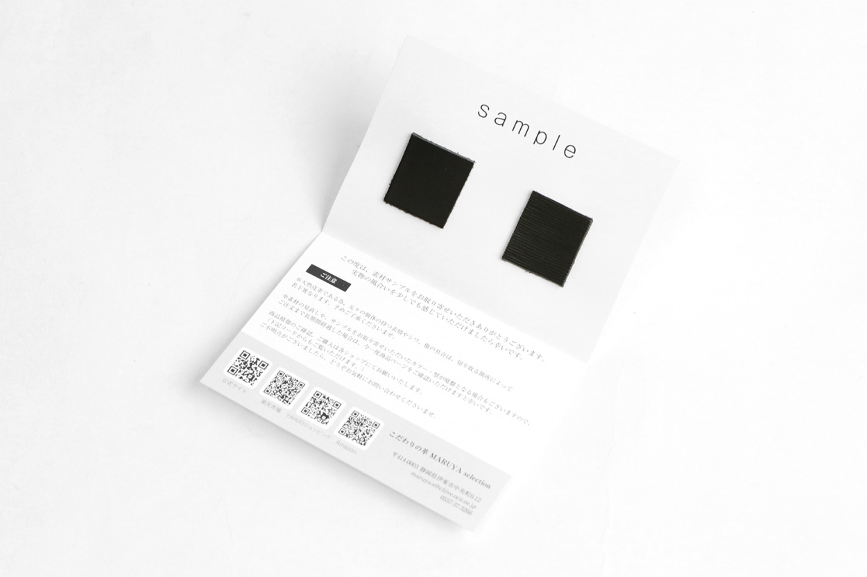 そこで、現在一部商品に置いて素材の見本をご用意させていただきました。