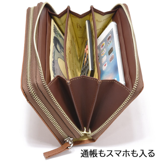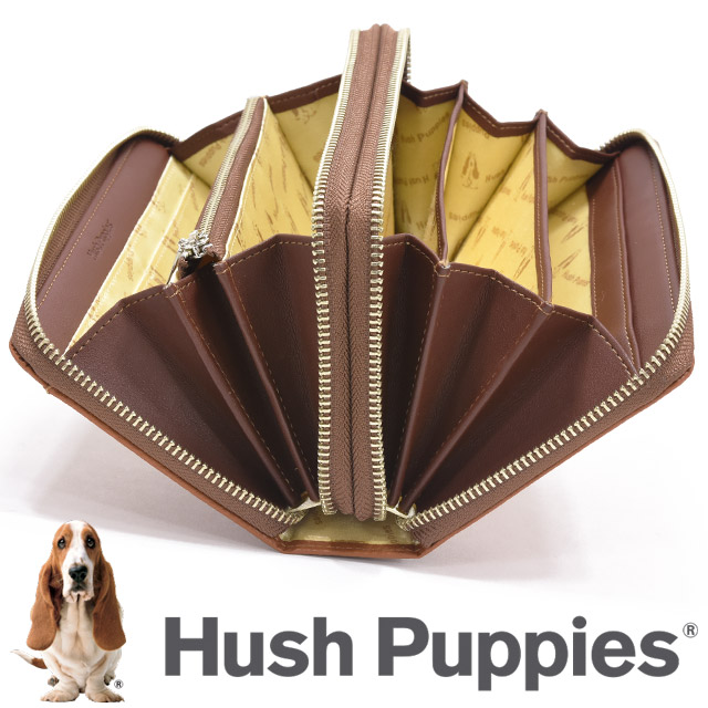 ハッシュパピー 長財布 大きい 大容量 大型 ラウンド ダブルファスナー ポーチ 2ルーム 持ち手付き 通帳収納 Hush Puppies 牛革 HP1081