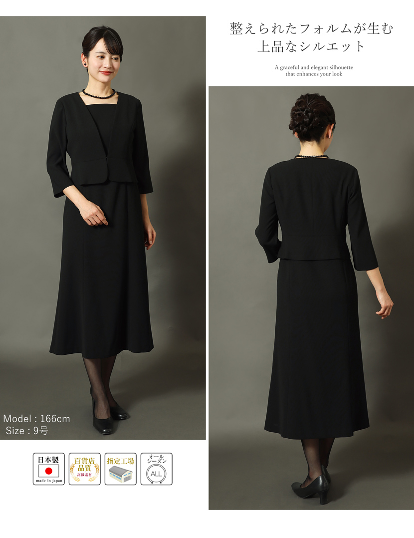喪服 レディース ブラックフォーマル 日本製 高級 フォーマル スーツ ロング丈 ワンピース 礼服 入学 入園 卒業 卒園 20代 30代 40代 50代 60代 60009