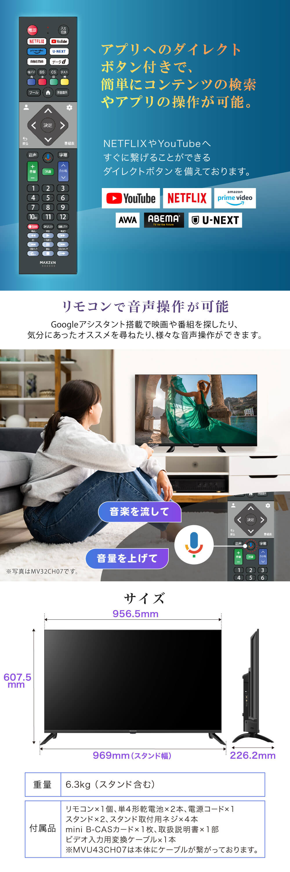 NETFLIXやYouTubeなどのプリインストールアプリに加えて、Google Play 搭載で追加のアプリをダウンロードでき、映画、音楽