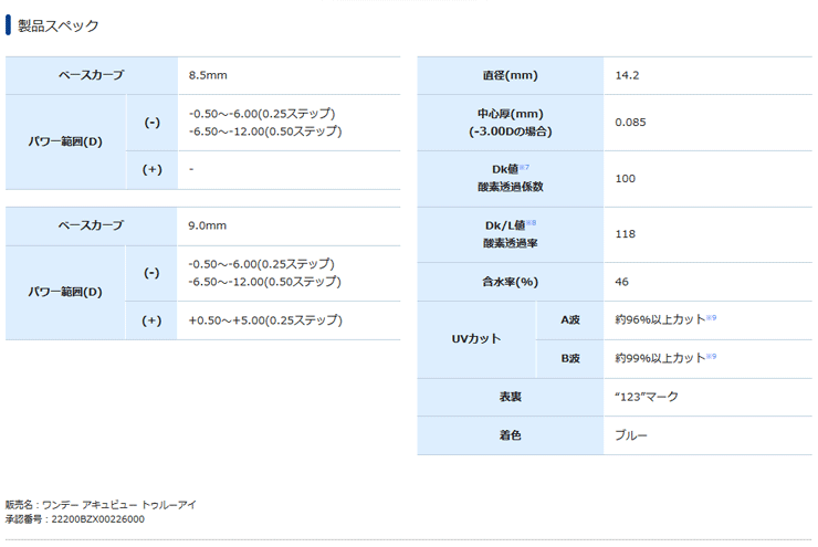 ◆レンズ度数(D):(BC 9.0)-0.50〜-12.00/+0.50〜+5.00、(BC 8.5)-0.50〜-12.00
