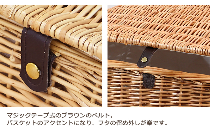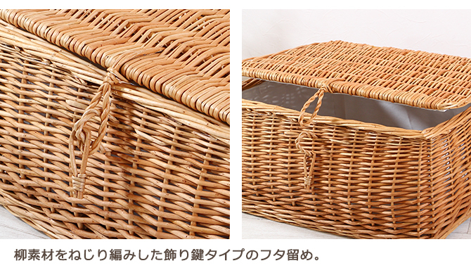 フタ留めが柳をねじり編みしたかわいらしい「編み鍵タイプ」と、