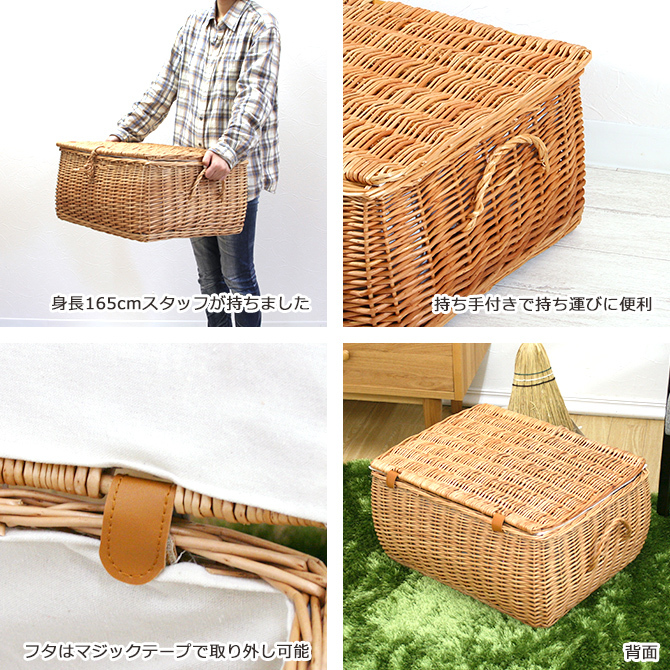 ウィロー(柳)製のフタ付きぽってりバスケット。