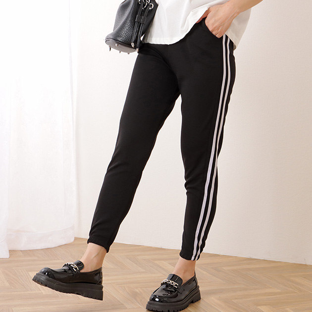 裾は9分丈になっているので、くるぶしをさりげなく見せることで、細見え効果も期待できます。