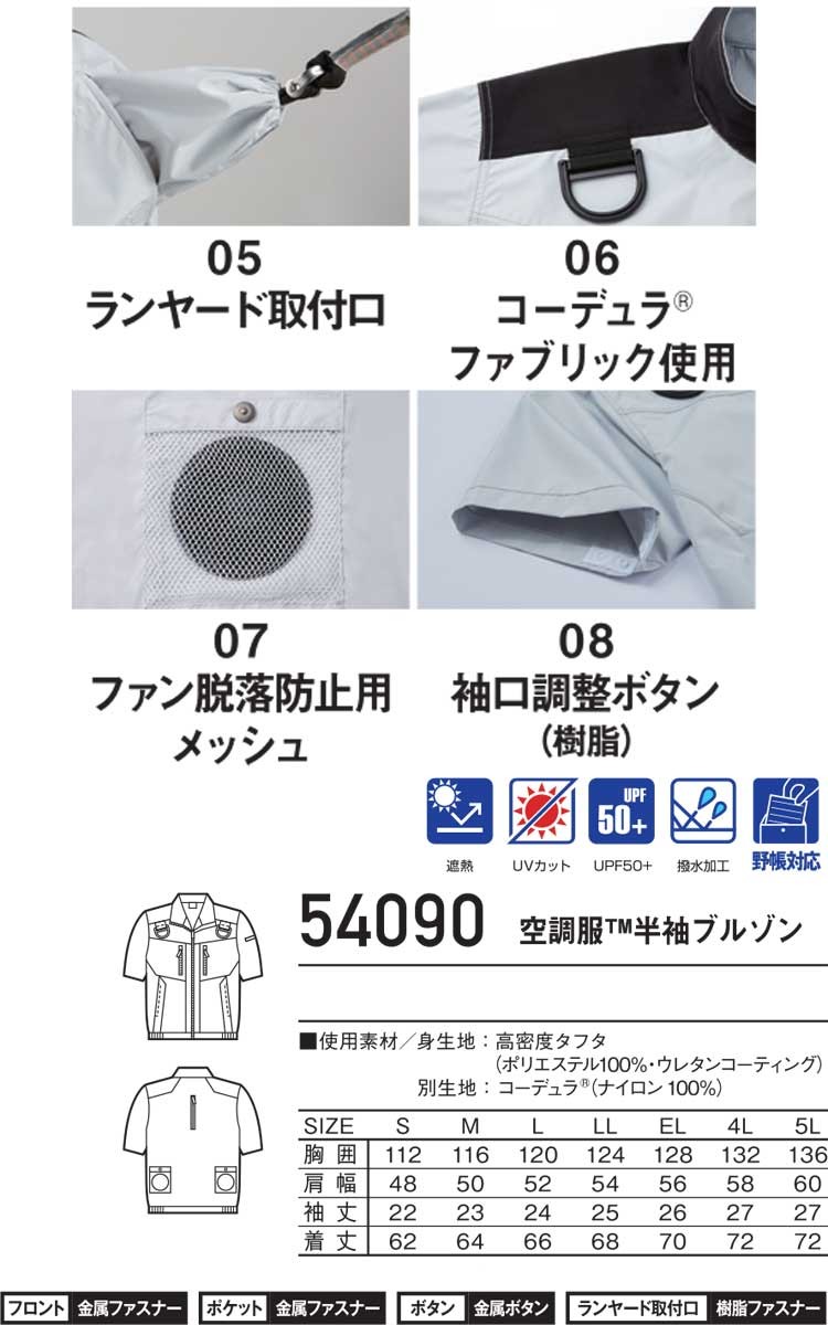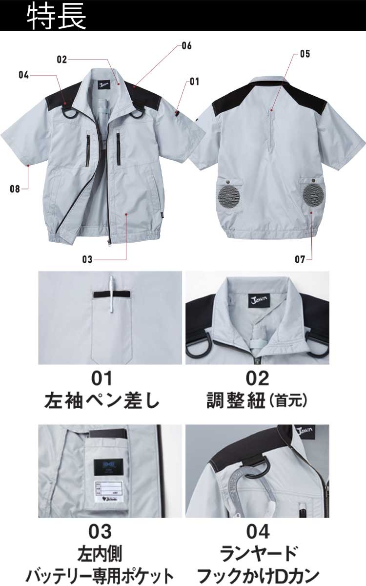 空調服 Jawin ジャウィンフルハーネス対応半袖ジャケット・大風量パワーファン・バッテリーセット 54090set 自重堂