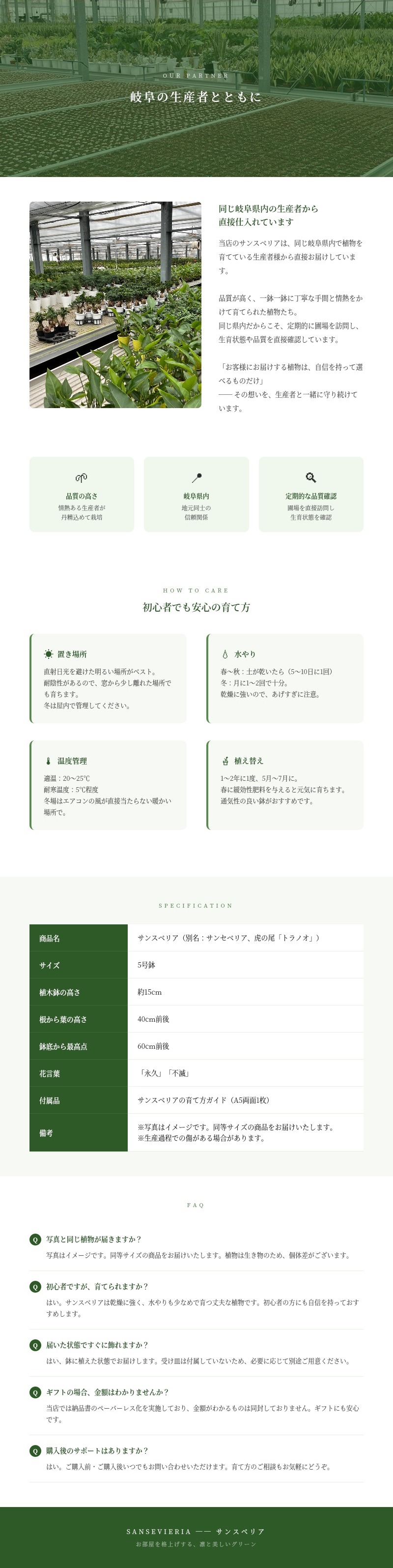 付属品:サンスベリアの育て方ガイド(A5両面1枚)