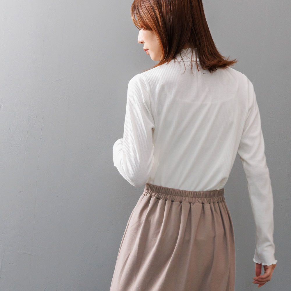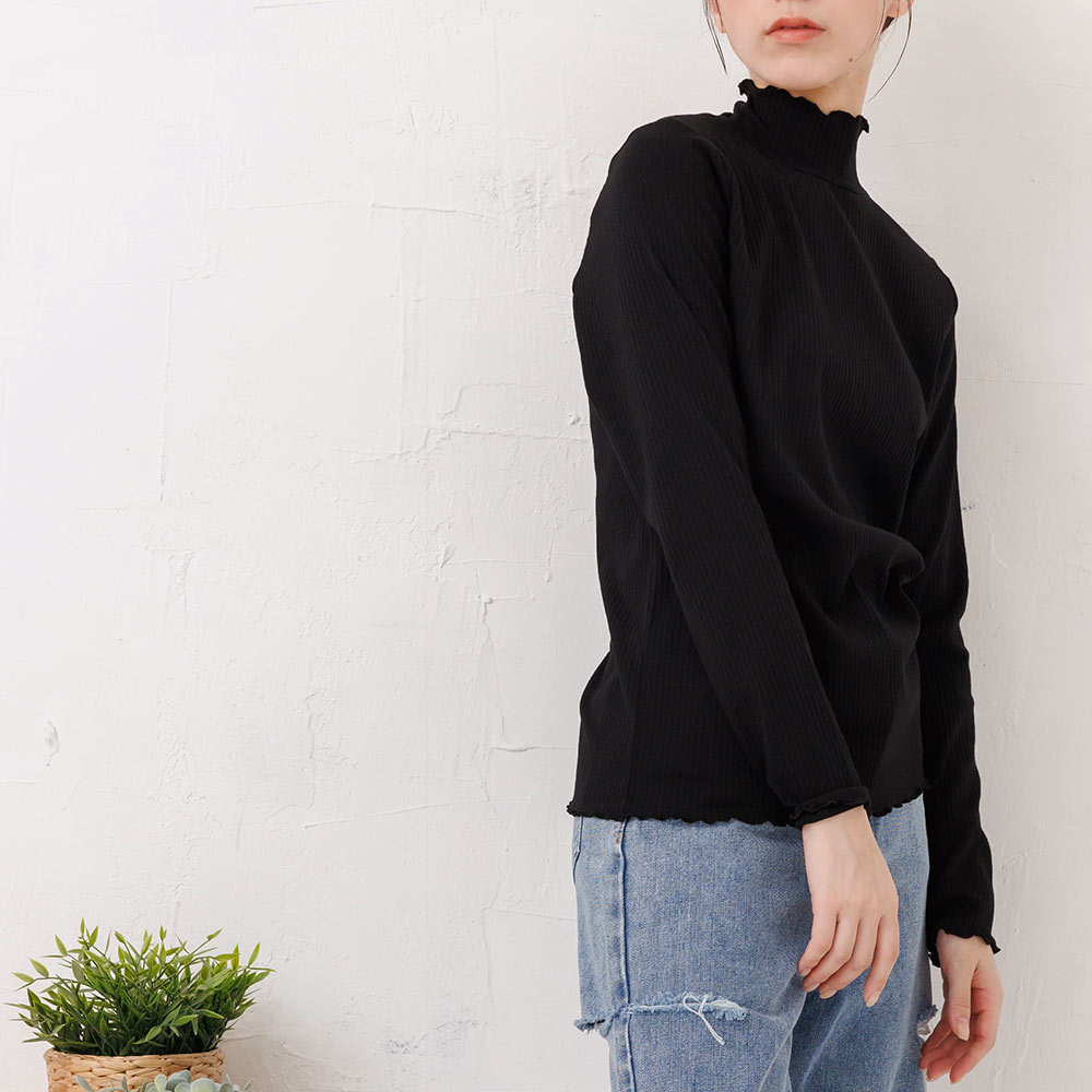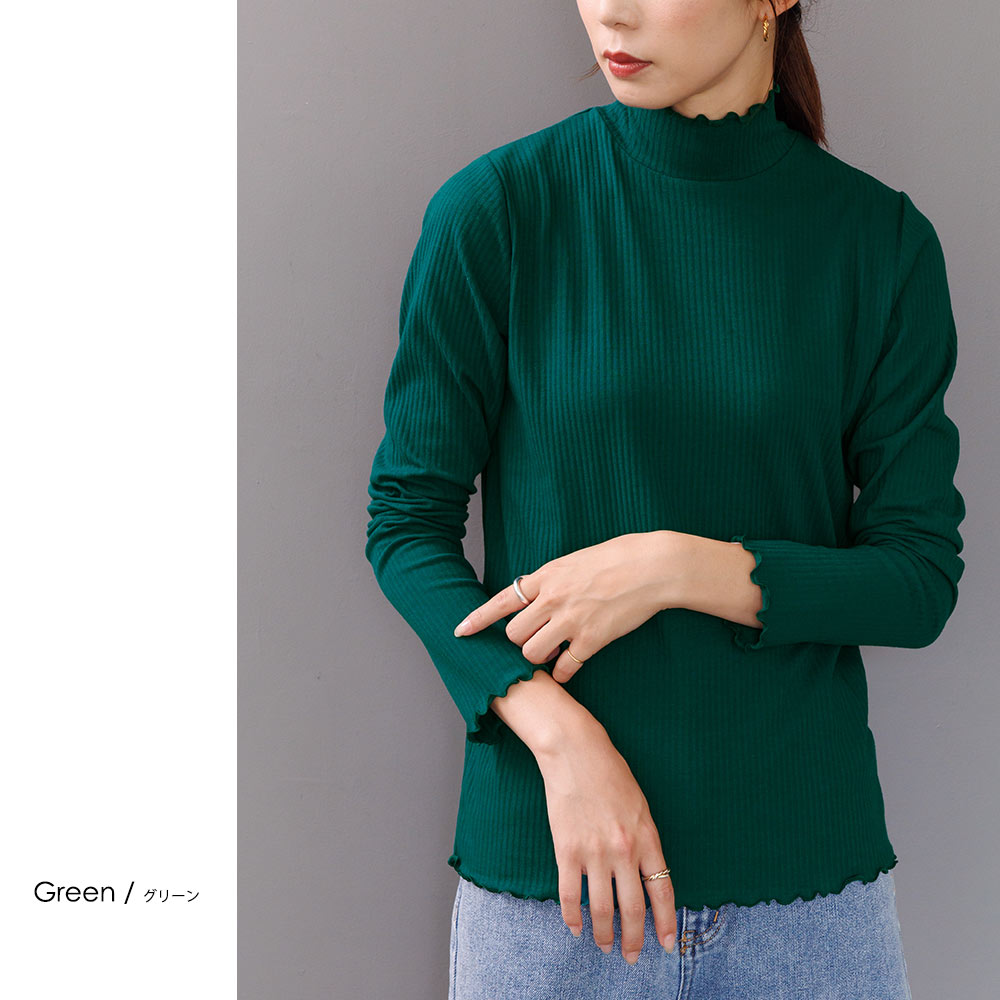 ハイネック長袖Tシャツ トップス レディース メロートップス リブインナー カットソー (郵2) ポイント消化