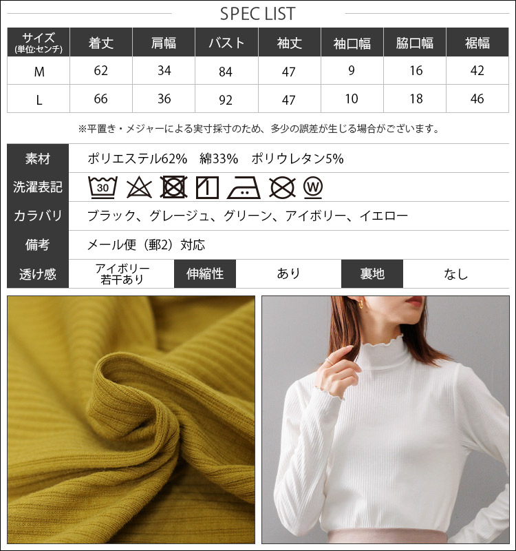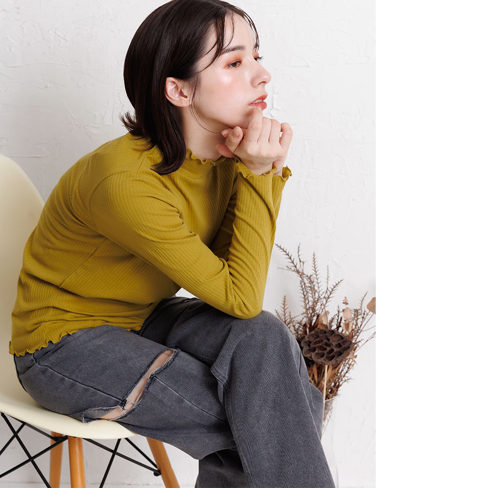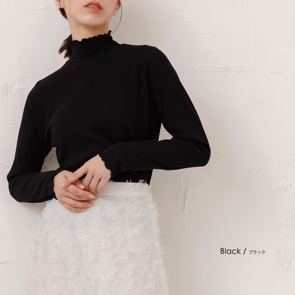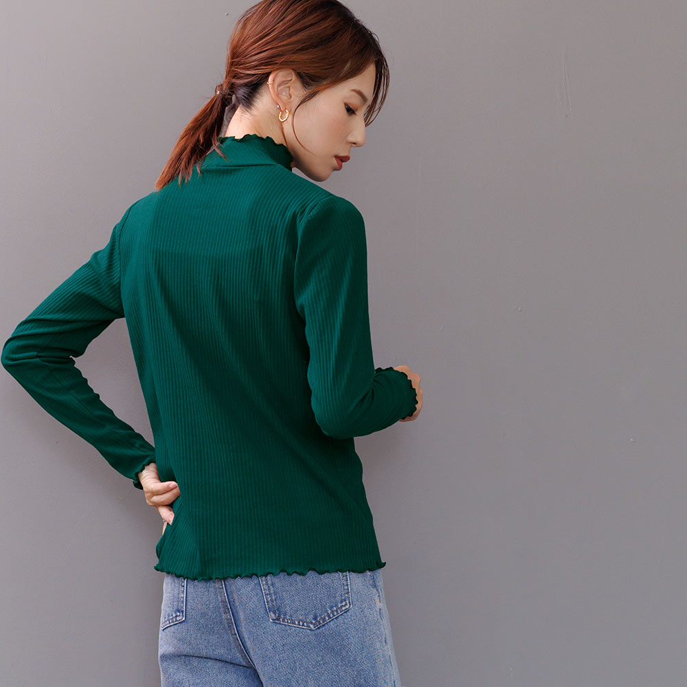 ハイネック長袖Tシャツ トップス レディース メロートップス リブインナー カットソー (郵2) ポイント消化