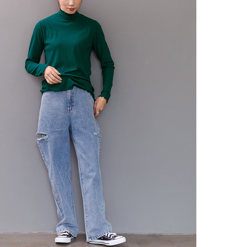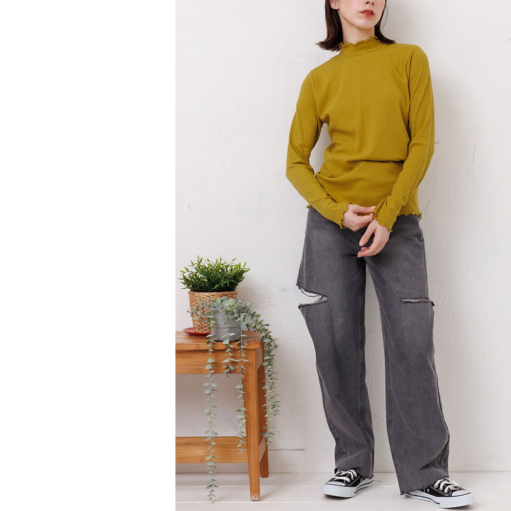 長袖カットソー ハイネック ロンT 重ね着コーデ カジュアル 春 夏 秋 冬 オールシーズン