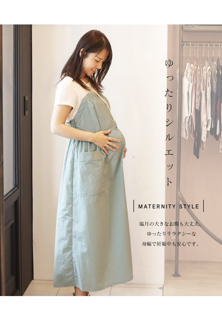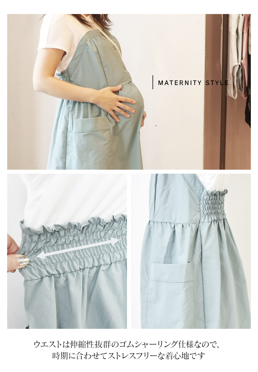 後ろのシャーリング部分がゴム仕様になっているので、大きなお腹も楽ちんな着心地です。