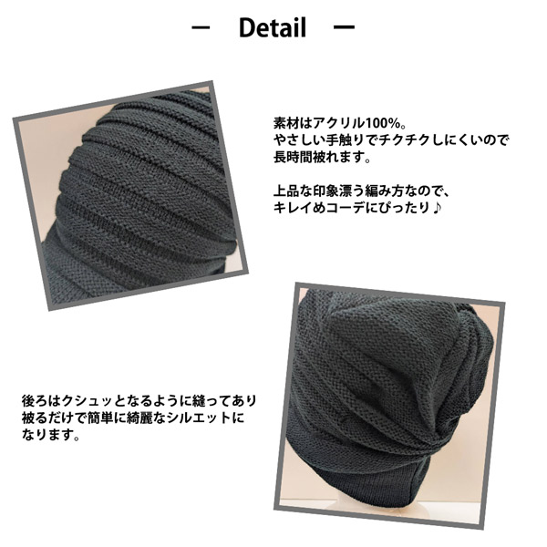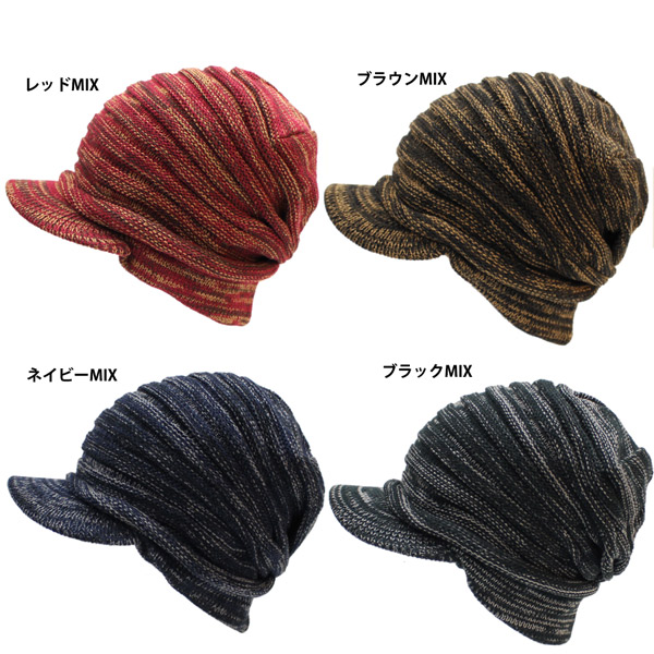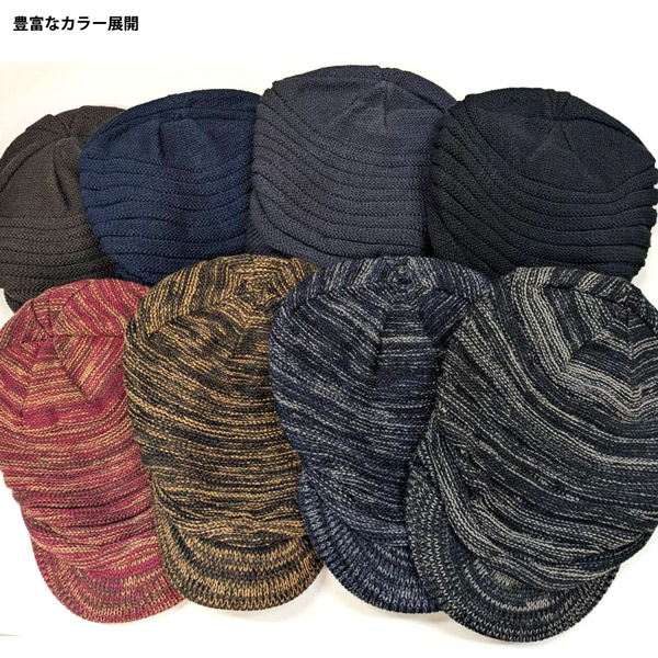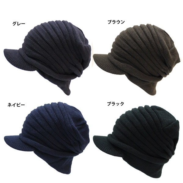 プリーツ編みの立体感 安定感ある被り心地 つば付きニット