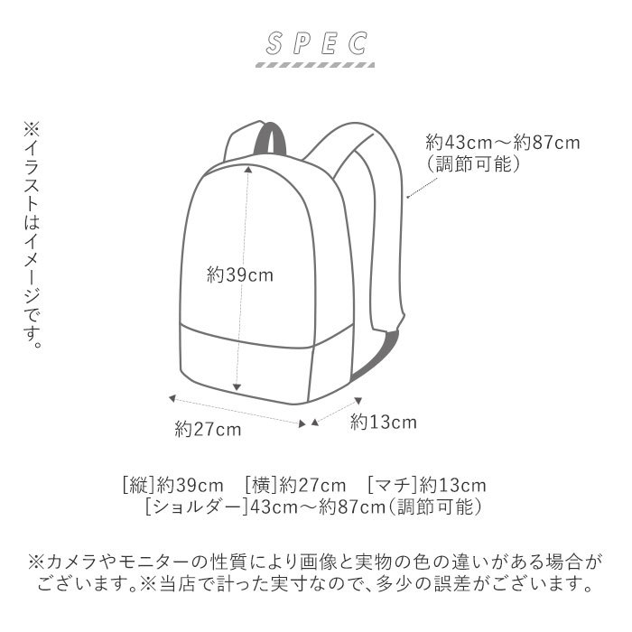 [縦]約39cm/[横]約27cm/[マチ]約13cm