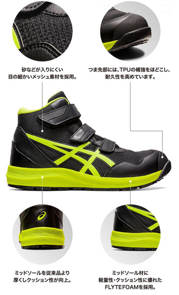 アシックス asics 安全靴 CP216 1273A076 ホワイトXライケングリーン(100)マジック ハイカット ユニセックス